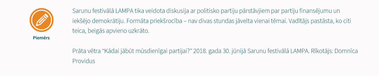 Formāts tiek izmantots prāta vētrām, ideju vākšanai, kā arī, lai cilvēkus “satīklotu”, aicinātu izteikt idejas ārpus savas specifikācijas. Mīnuss – nav interesanti plašākai auditorijai vērot no malas.