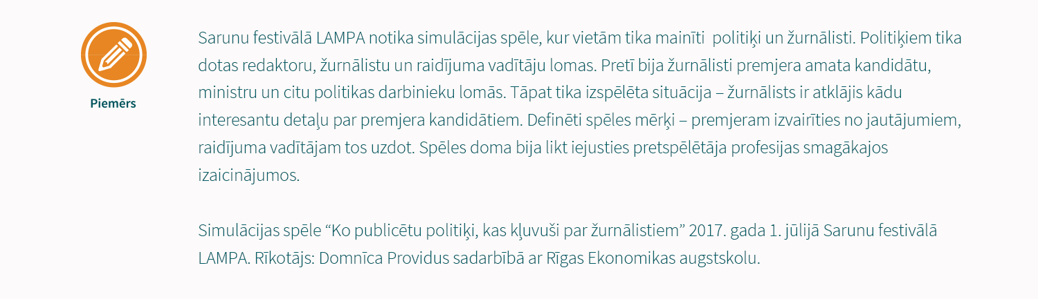 Formāts, kas vairāk vērsts uz pasākuma dalībnieku ieguvumu, ne tik daudz uz publiku.